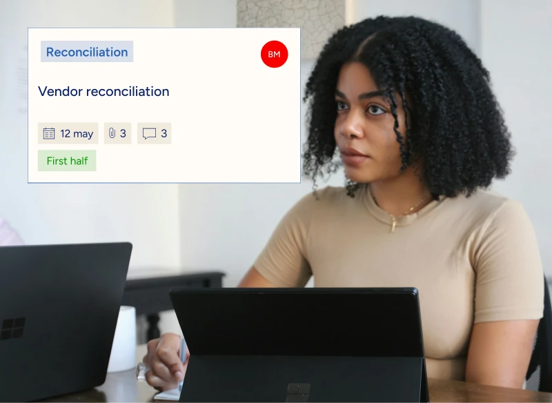 Much more than executing financial processes, our platform allows you to centralize all communication. Register one-off or recurring tasks, define customized stages, include teams and people involved in the process, assign deadlines, comment, notify, mention and monitor progress in real time, in a way that is totally flexible and adaptable to what works in the day-to-day lives of those who use it. Our clients take advantage of these features to monitor closing activities, audit deliveries and tax payments